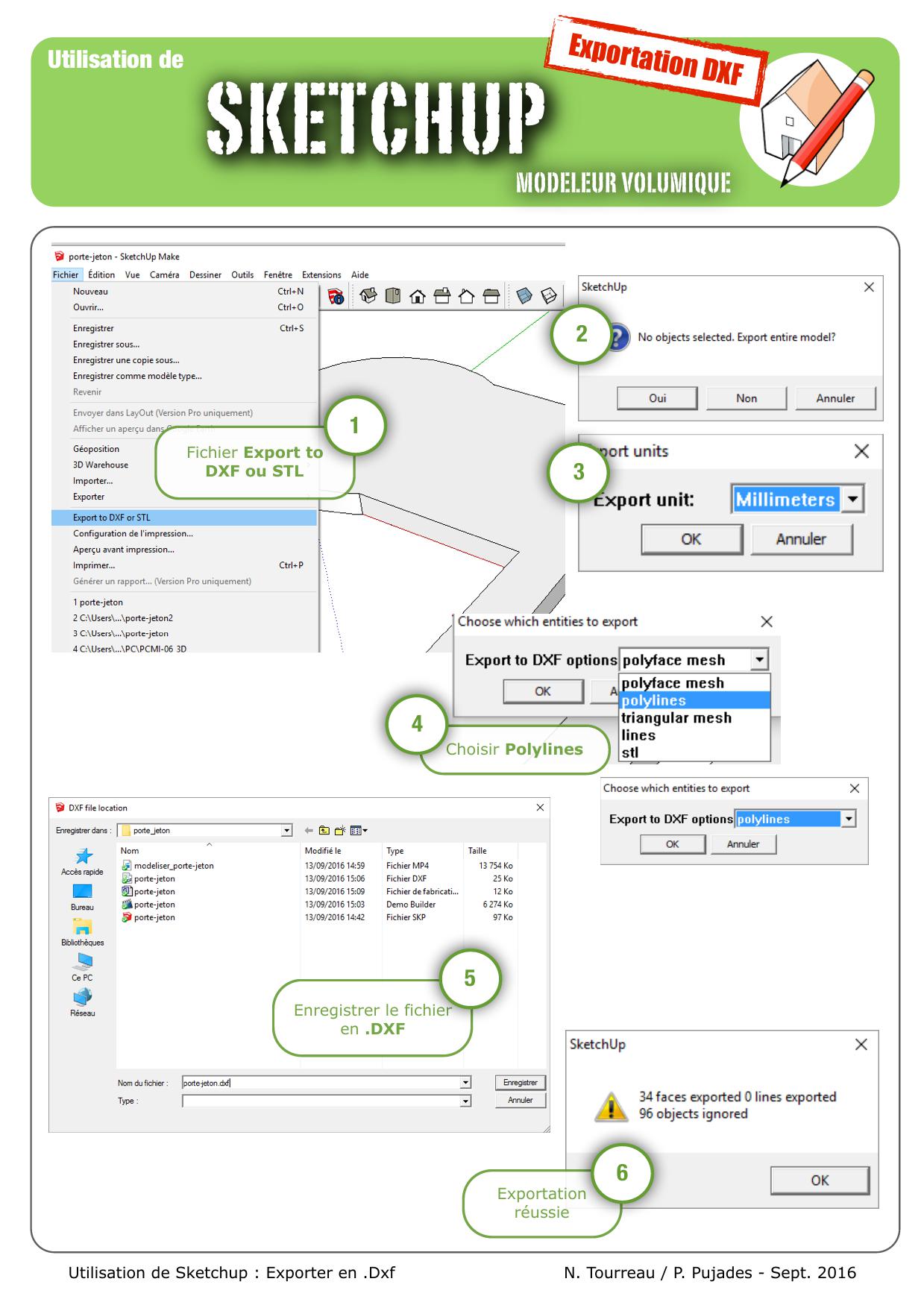 Sketchup Ne permet pas d'origine d'exporter un fichier DXF, il faut donc lui mettre un petit programme (PLUGIN) qui permet de le faire.